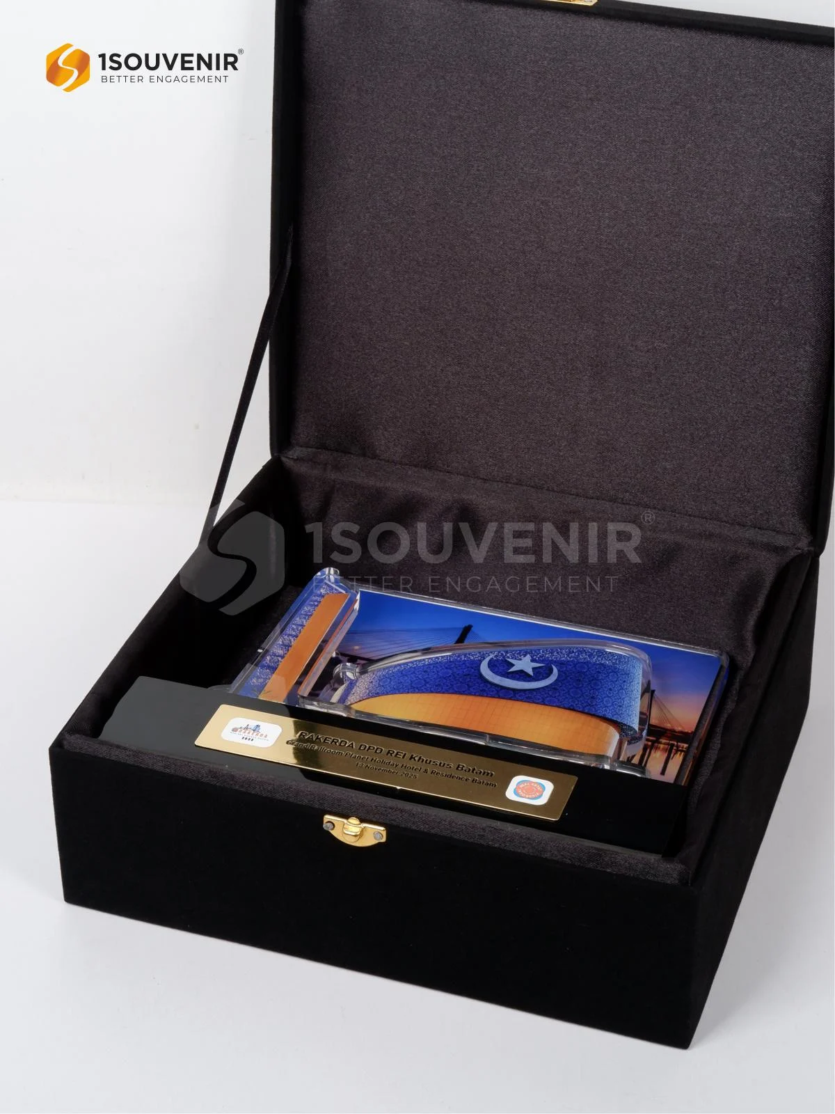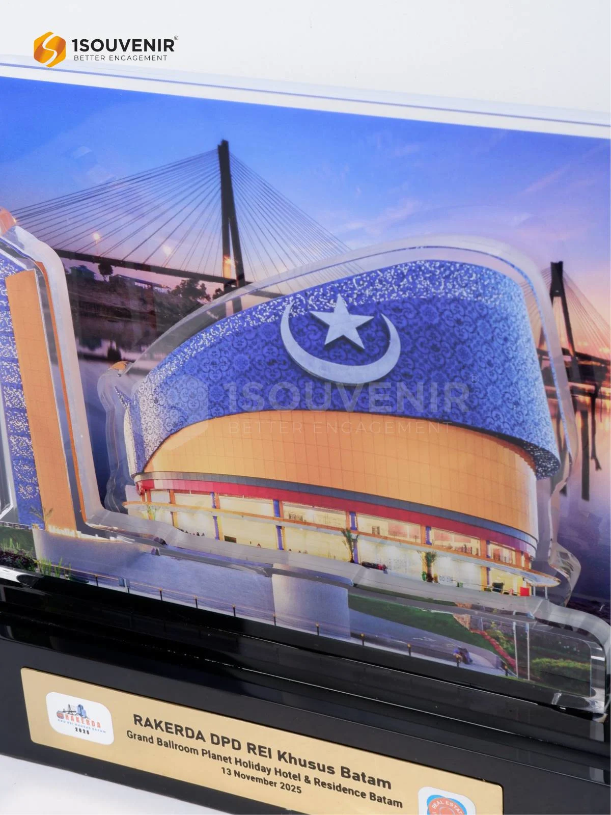 Plakat Rakerda DPD REI Khusus Batam ini dihadirkan sebagai kenang-kenangan bagi para peserta dan narasumber. Dengan visual gedung ikonik, plakat akrilik yang satu ini merekam kebersamaan dalam satu agenda penting, tempat gagasan dan komitmen tumbuh untuk memajukan sektor properti.