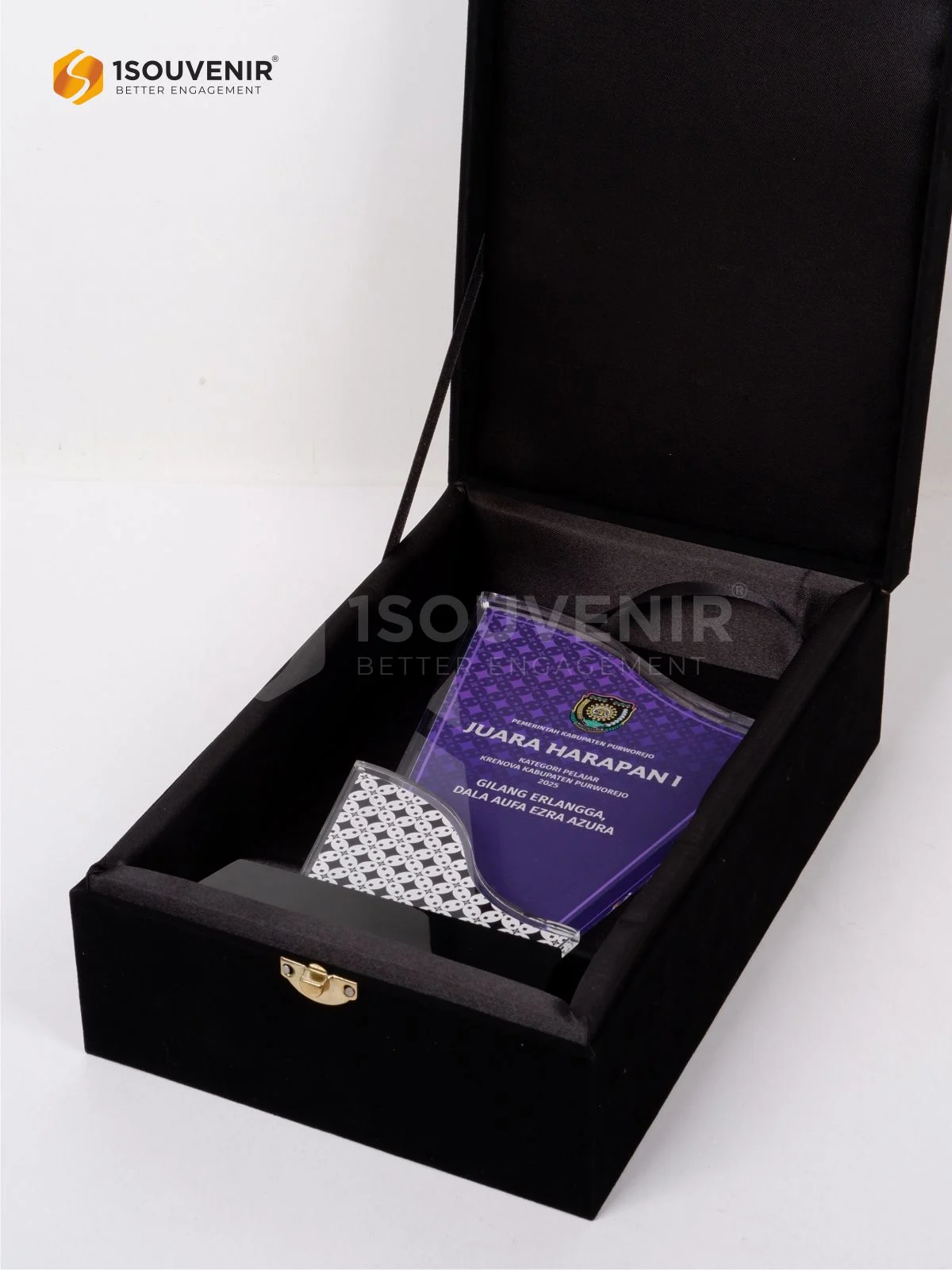 Plakat akrilik menjadi pilihan tepat untuk penghargaan resmi: tampil modern, kuat, dan berkelas. Wujudkan momen apresiasi yang berkesan bersama 1Souvenir, mitra profesional untuk penghargaan yang mencerminkan nilai dan prestasi sesungguhnya.