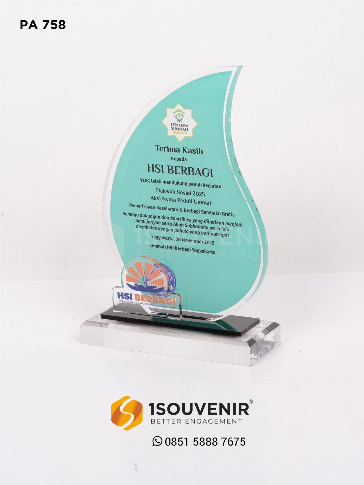 Plakat akrilik memang pilihan elegan untuk sebuah apresiasi berkelas. Wujudkan penghargaan yang bermakna bersama 1Souvenir.