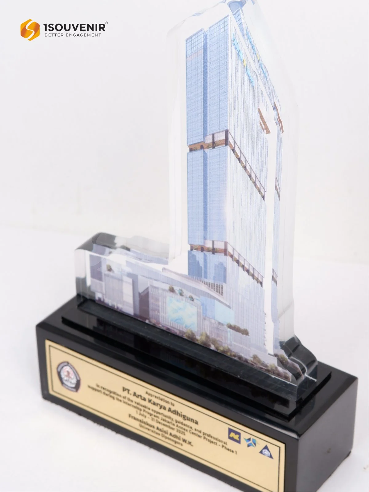 Sebagai bentuk apresiasi, Plakat Jakarta Annex Center Project dirancang khusus untuk PT Arta Karya Adhiguna. Desainnya menampilkan ilustrasi bangunan yang ikonik, dipadukan dengan detail elegan yang merepresentasikan pencapaian serta kontribusi nyata dalam proyek tersebut.
