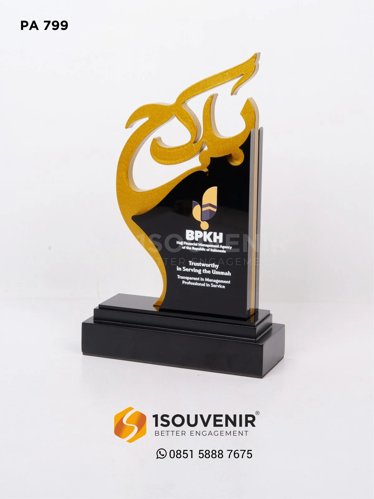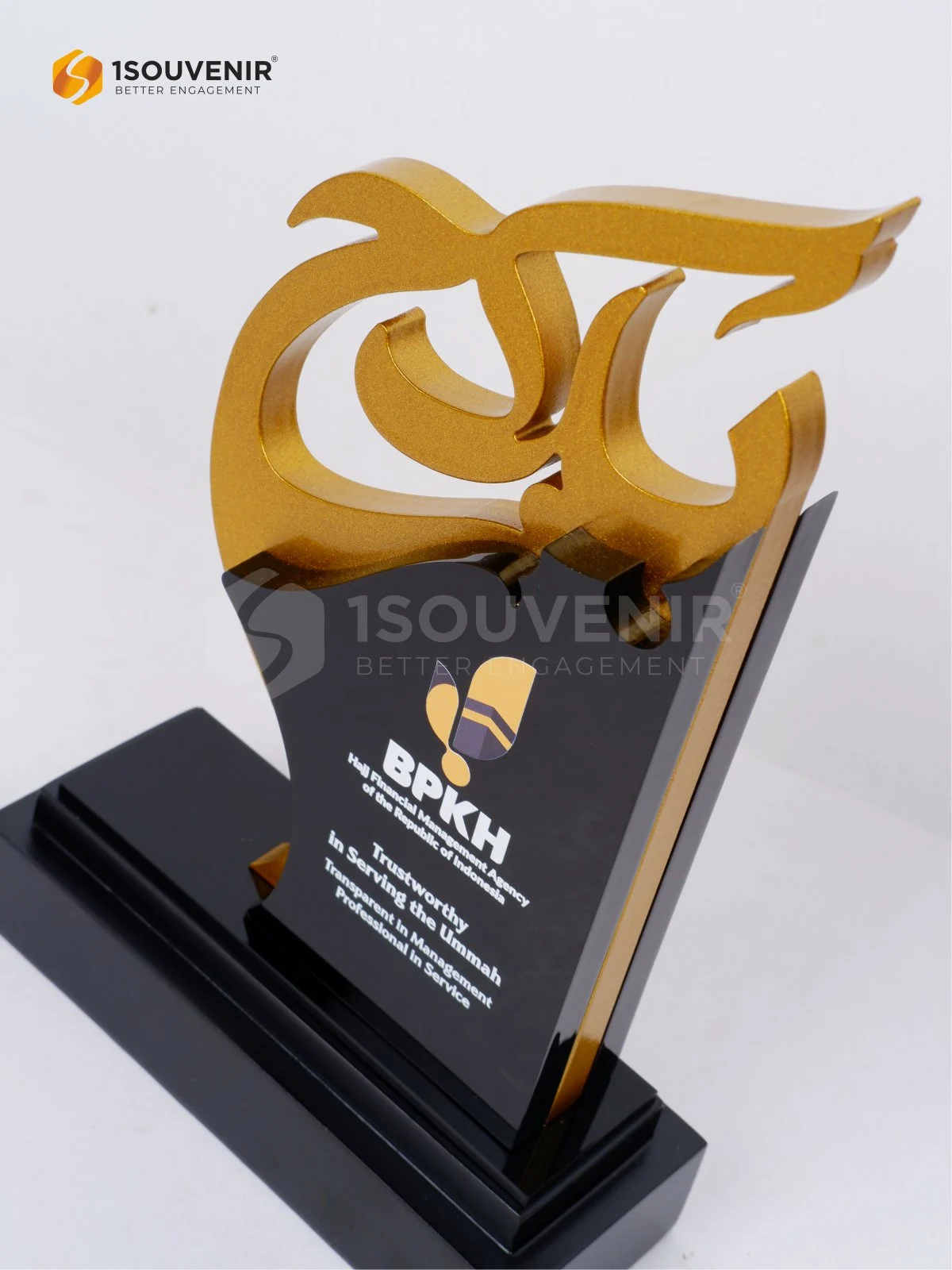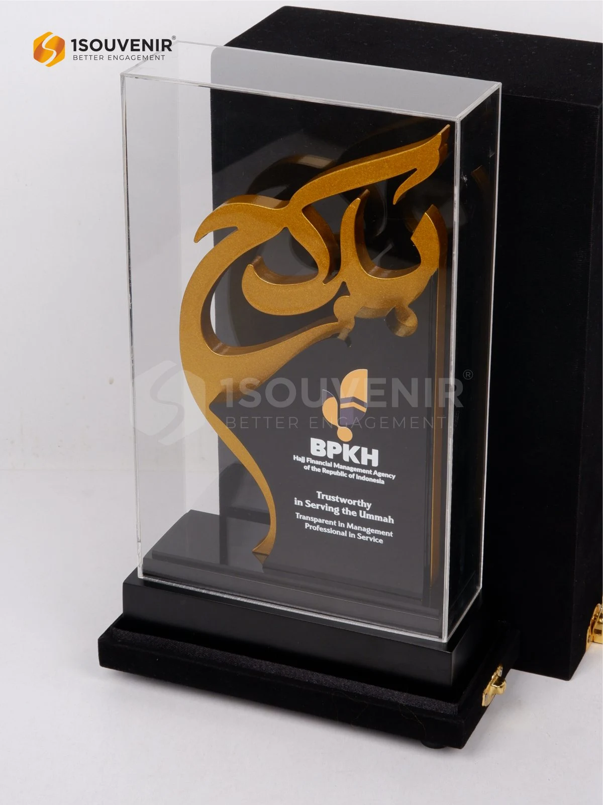 Plakat BPKH ini menjadi kenang-kenangan istimewa yang merepresentasikan nilai integritas dan dedikasi lembaga. Dengan desain elegan berpadu nuansa hitam dan emas, plakat ini tampil eksklusif sebagai simbol penghargaan yang bermakna.