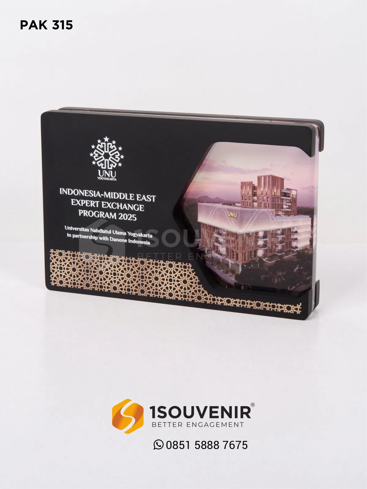 Plakat Kayu Akrilik Kenang-kenangan Indonesia-Middle East Expert Exchange Program 2025 dari UNU Yogyakarta