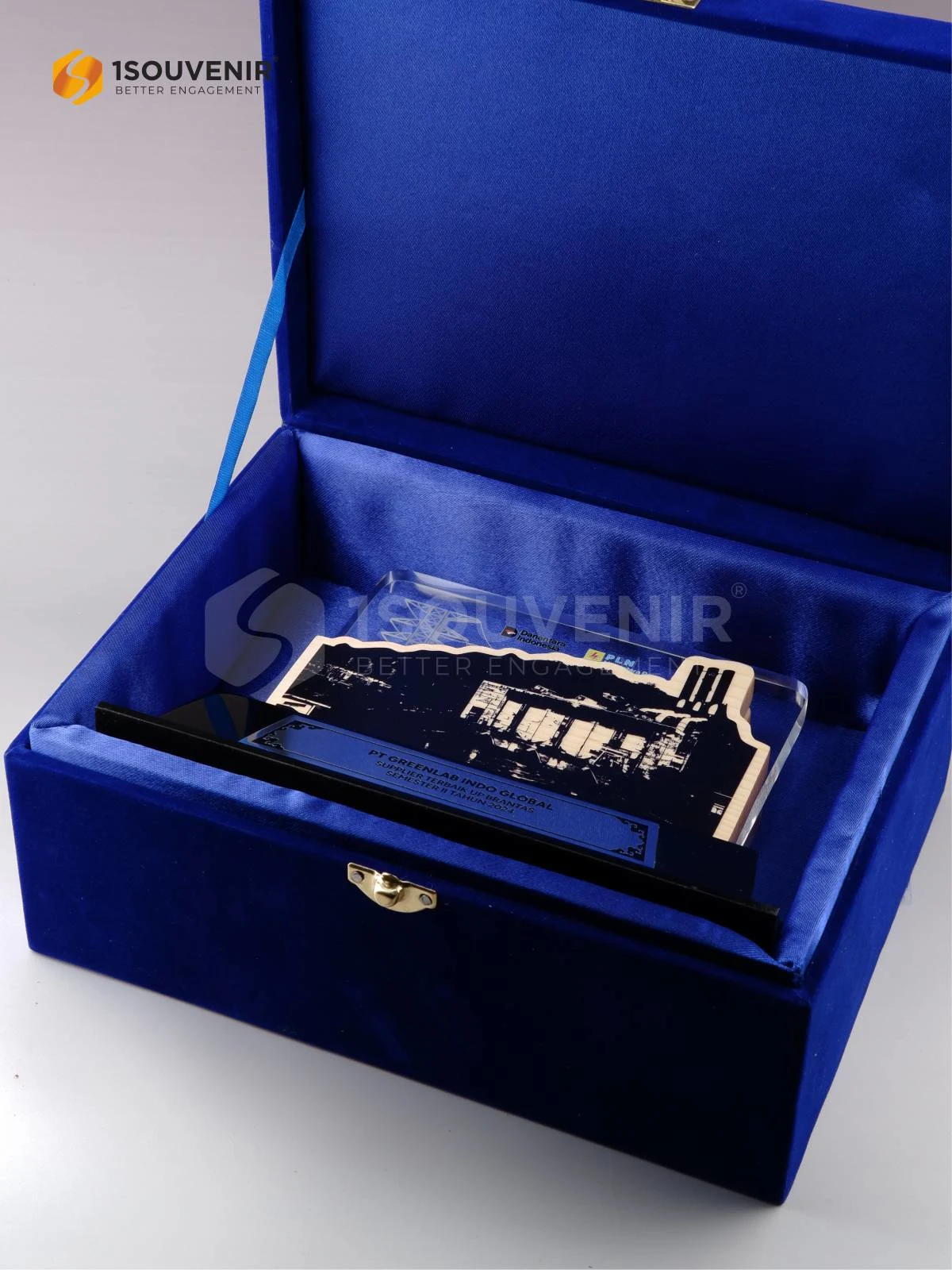Menggunakan kombinasi kayu dan akrilik, plakat ini menjadi pilihan ideal untuk penghargaan eksklusif dan penuh makna. Ingin membuat apresiasi lebih berkesan? Percayakan pada 1Souvenir.