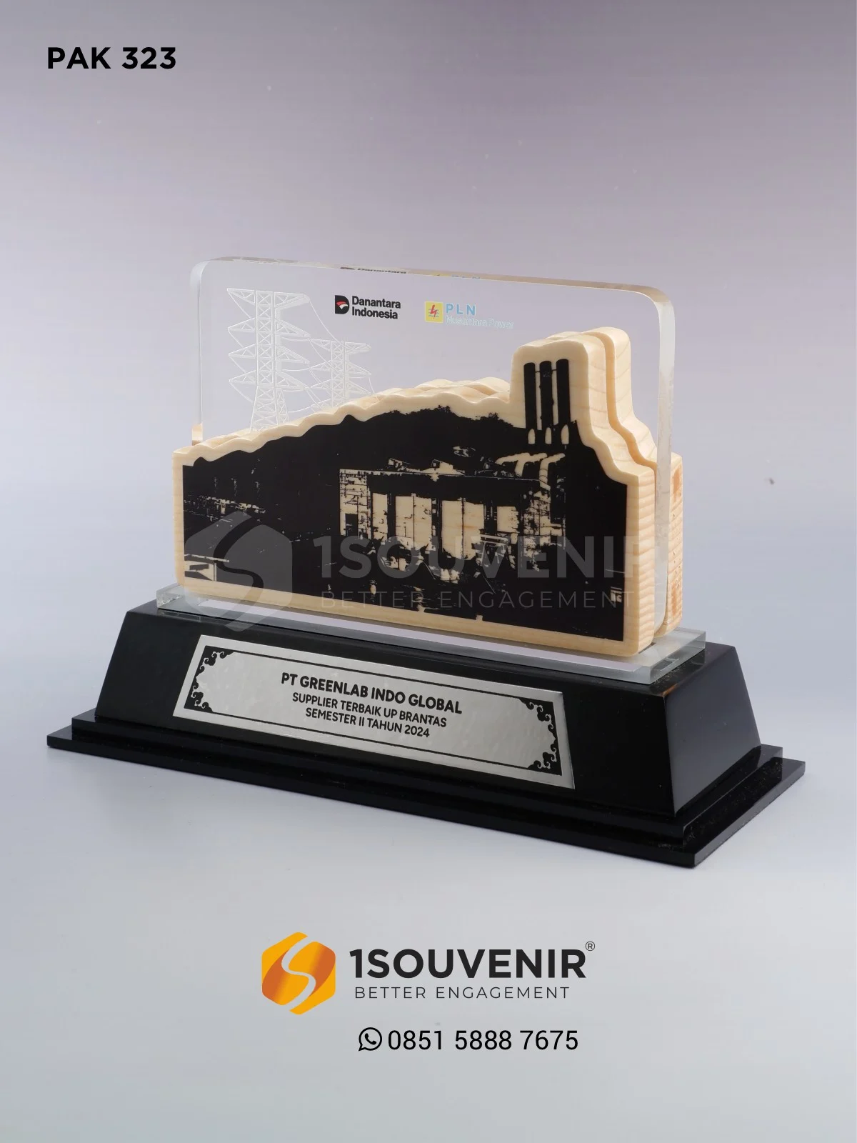 Untuk merayakan pencapaian tersebut, Plakat Supplier UP Brantas hadir sebagai simbol apresiasi yang elegan. Dengan ilustrasi gedung dan menara listrik, penghargaan berupa plakat kayu akrilik ini memvisualisasikan kontribusi nyata dalam sektor energi.
