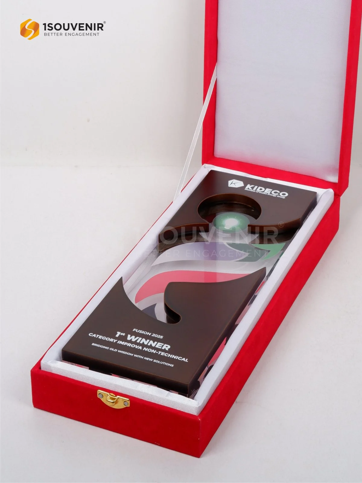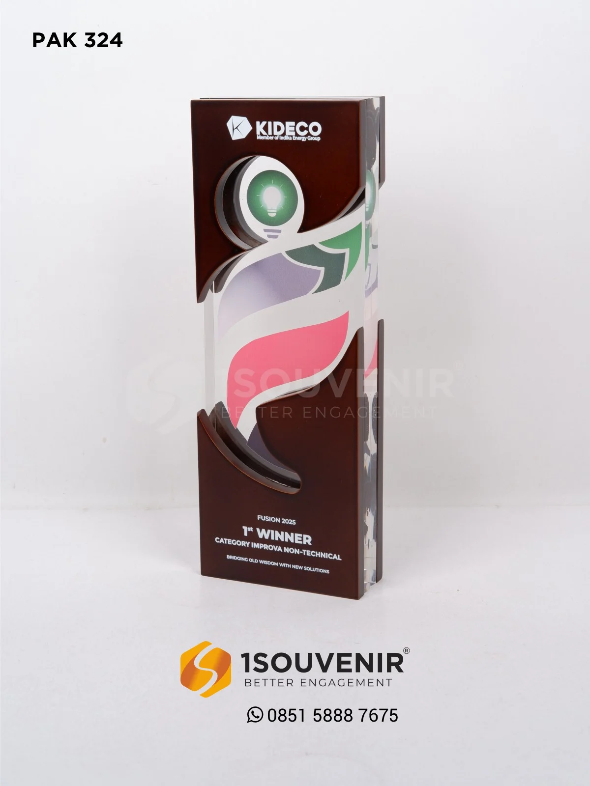 Terbuat dari perpaduan kayu dan akrilik, plakat ini menjadi simbol penghargaan modern yang penuh karakter. Ingin membuat plakat kayu akrilik yang berkelas dan berkesan? Percayakan pada 1Souvenir.