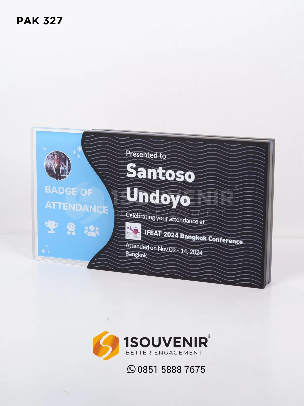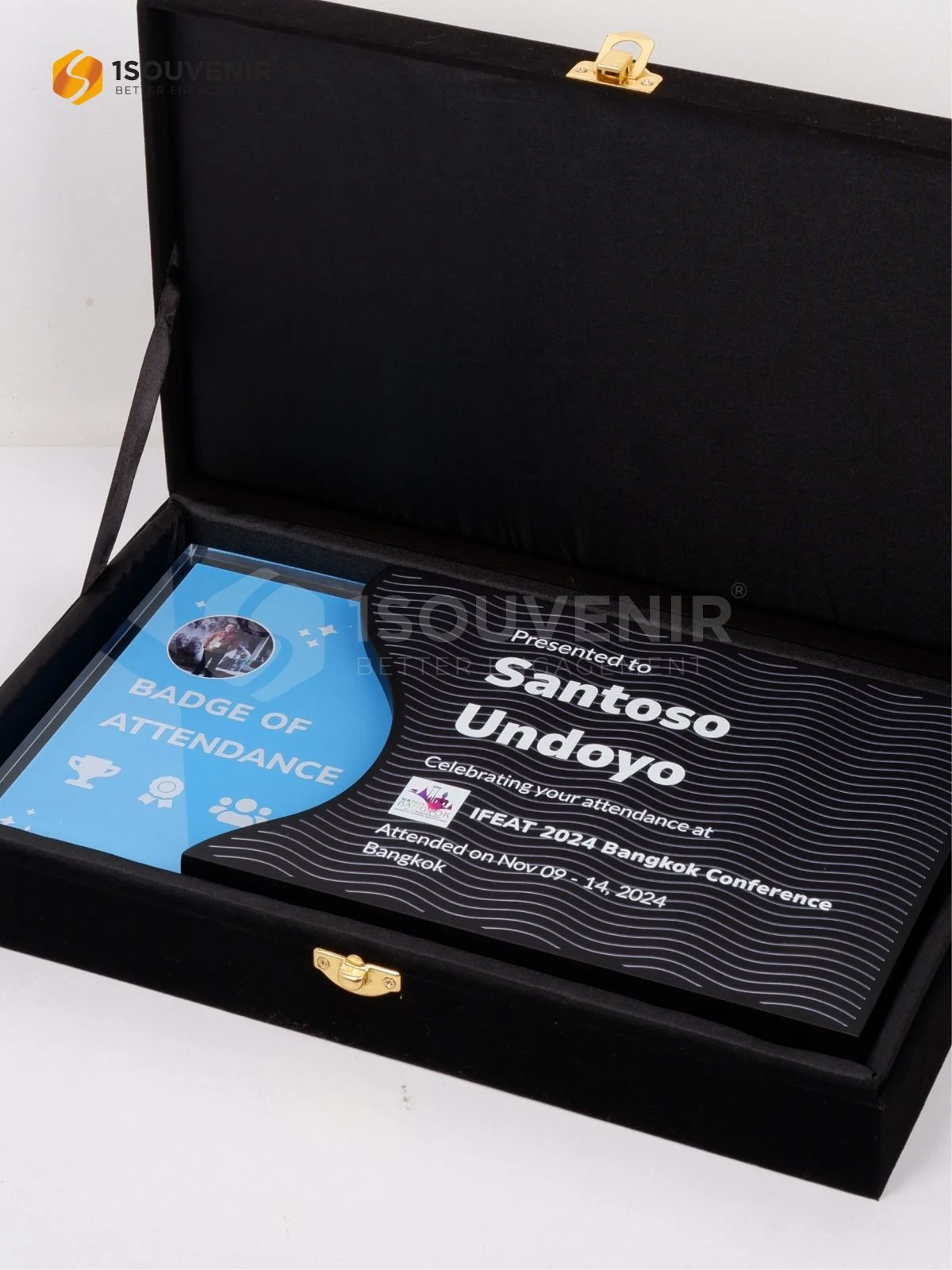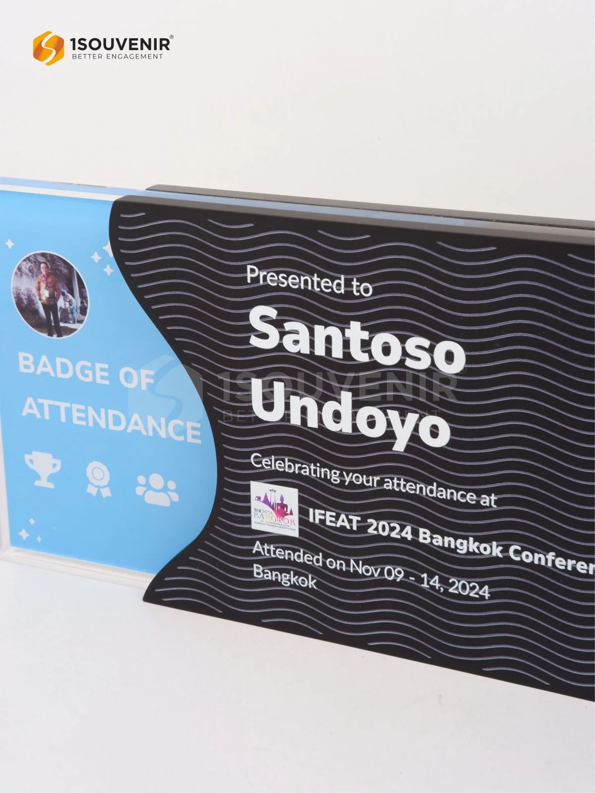Plakat Kayu Akrilik Penghargaan Badge of Attendace IFEAT 2024 Bangkok Conference