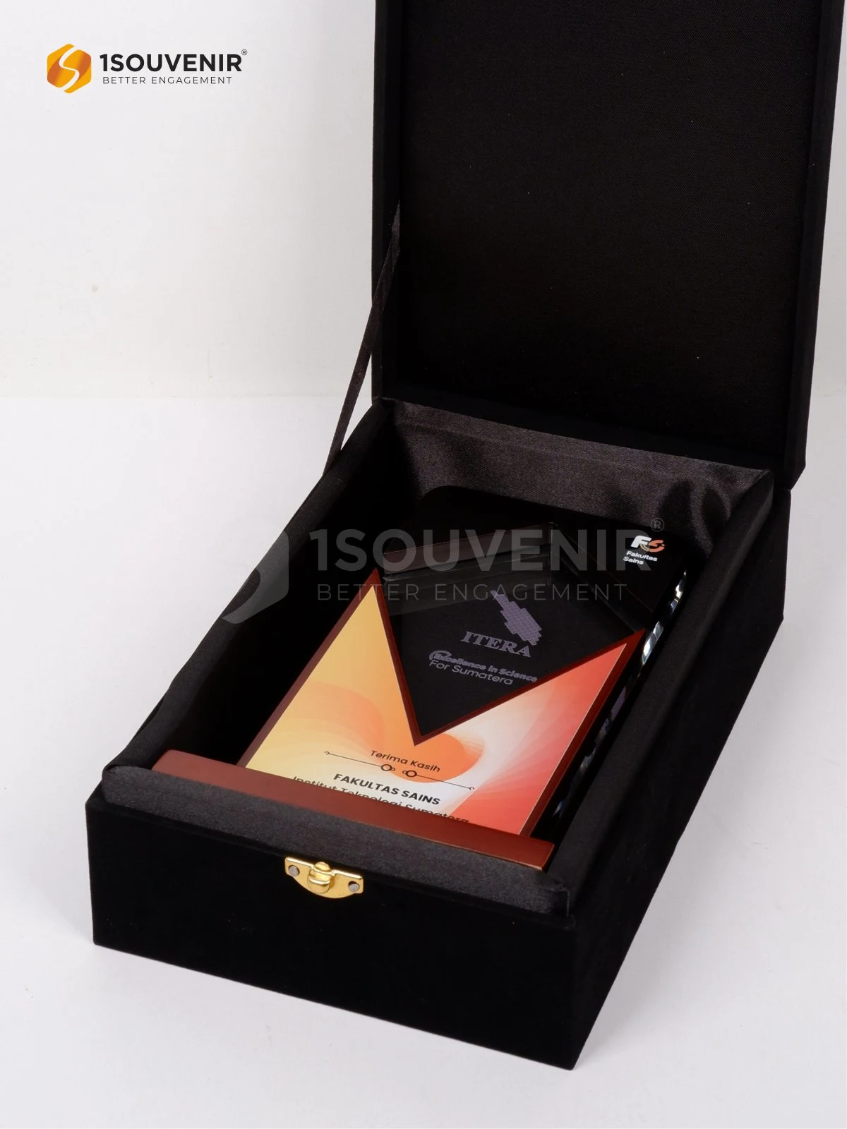 Perpaduan kayu dan akrilik menghadirkan kesan hangat sekaligus modern, cocok sebagai kenang-kenangan institusional yang berkelas. Percayakan plakat bermakna Anda pada 1Souvenir, partner tepat untuk wujudkan apresiasi yang tak terlupakan.