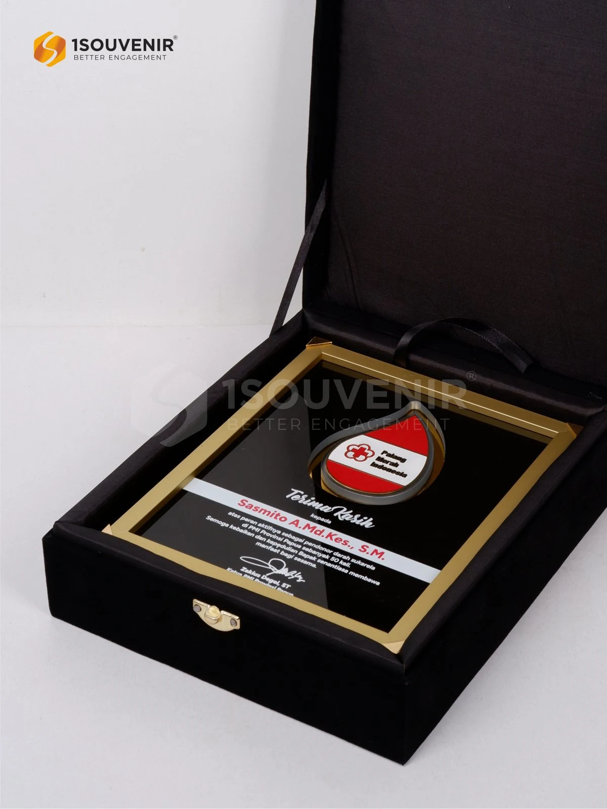 Sebagai bentuk apresiasi mendalam, Plakat PMI Papua hadir dalam wujud plakat frame elegan. Motif tetes darah merah-putih melambangkan semangat kepedulian dan keberanian, dibingkai indah dengan warna emas yang penuh makna penghormatan.