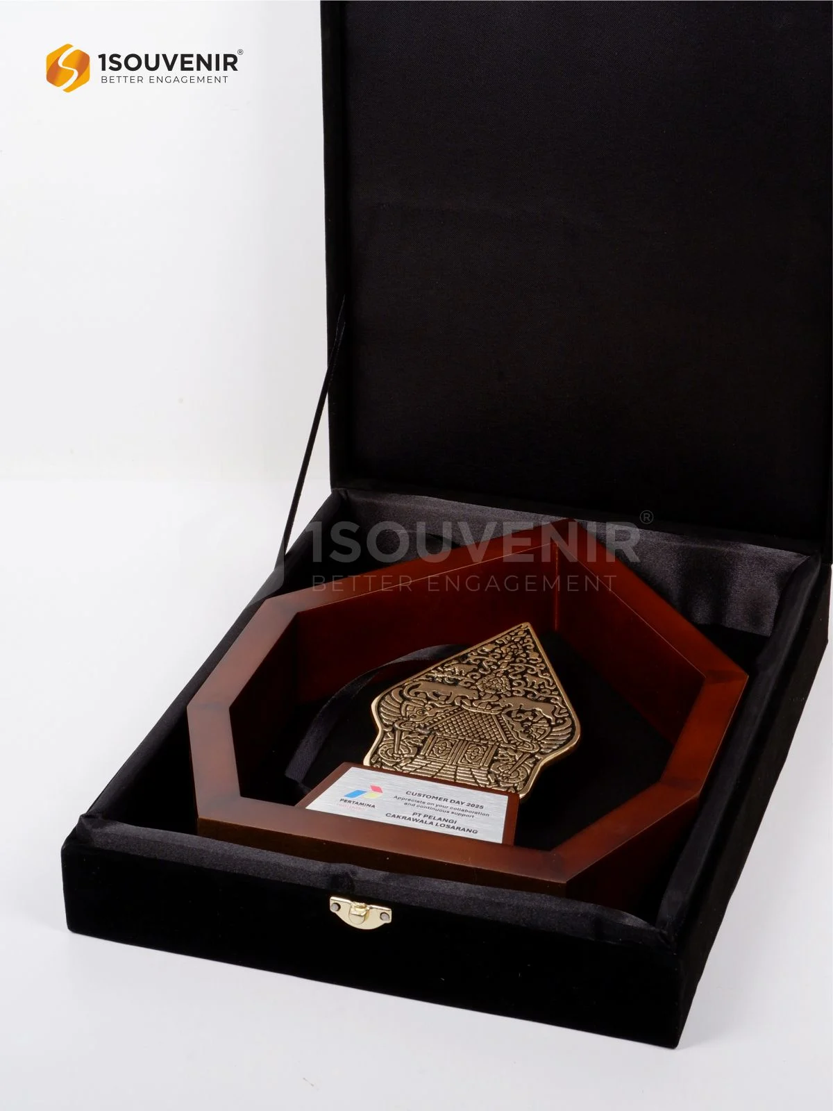 Plakat Frame Kayu Gunungan Penghargaan Customer Day 2025 dari Pertamina Hulu Energi untuk PT Pelangi Cakrawala Losarang