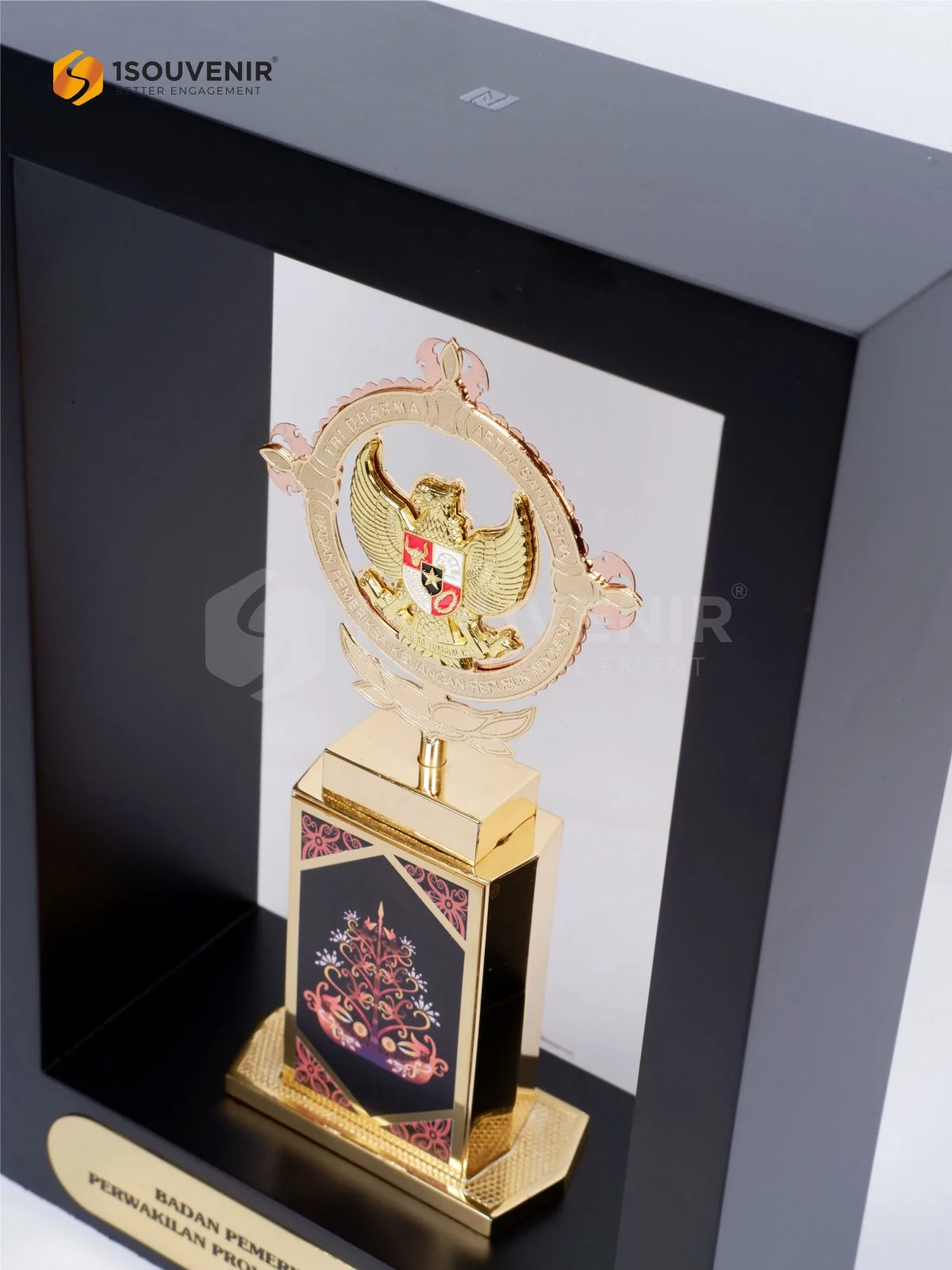 Plakat frame dengan desain modern memberikan tampilan yang menarik sekaligus eksklusif, menjadikannya simbol apresiasi yang berkelas. Wujudkan kenang-kenangan profesional Anda bersama 1Souvenir untuk setiap momen istimewa.