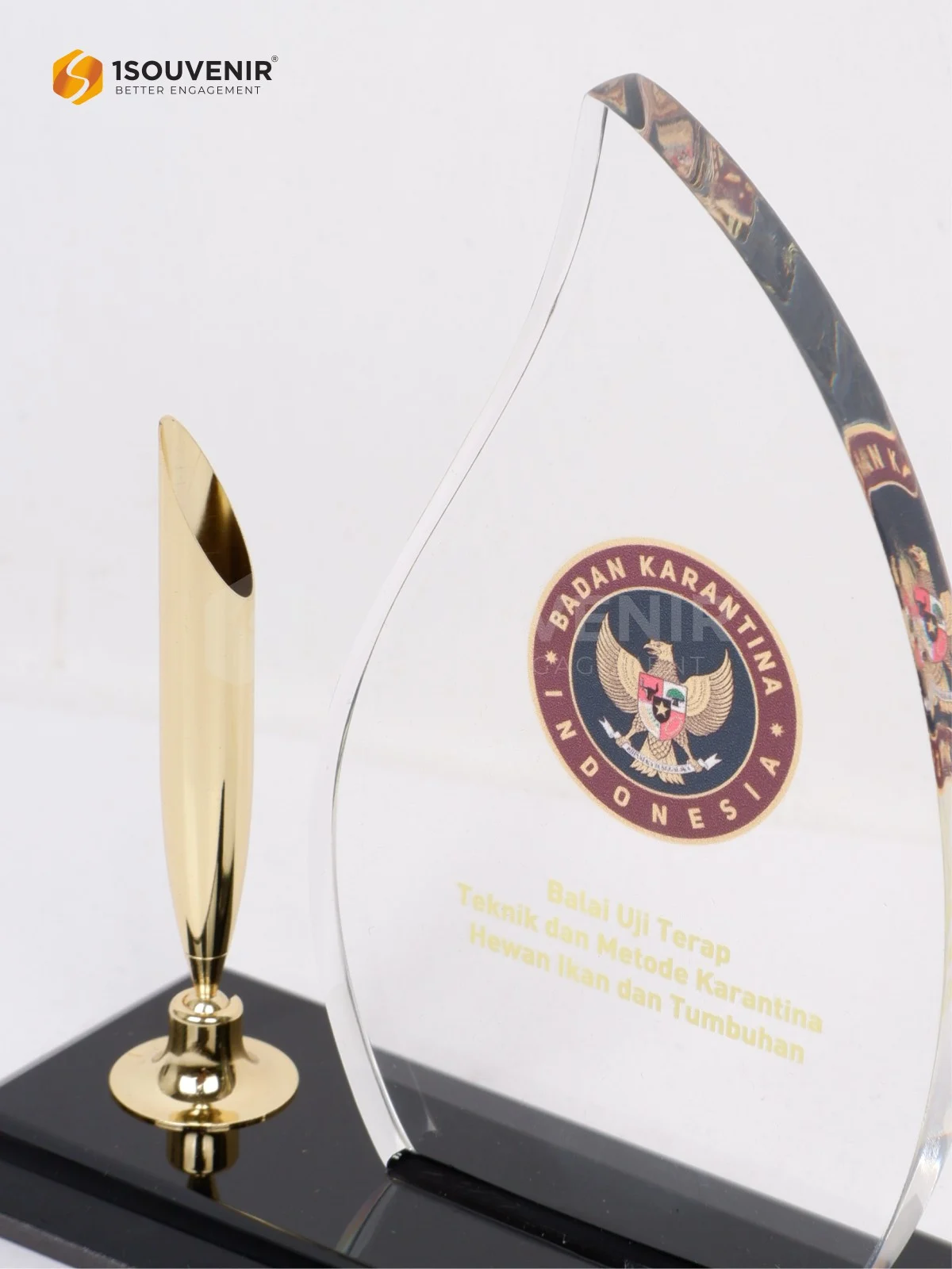 Plakat Jam Pen Holder Kenang-kenangan dari Balai Uji Terap Teknik dan Metode Karantina Hewan Ikan dan Tumbuhan