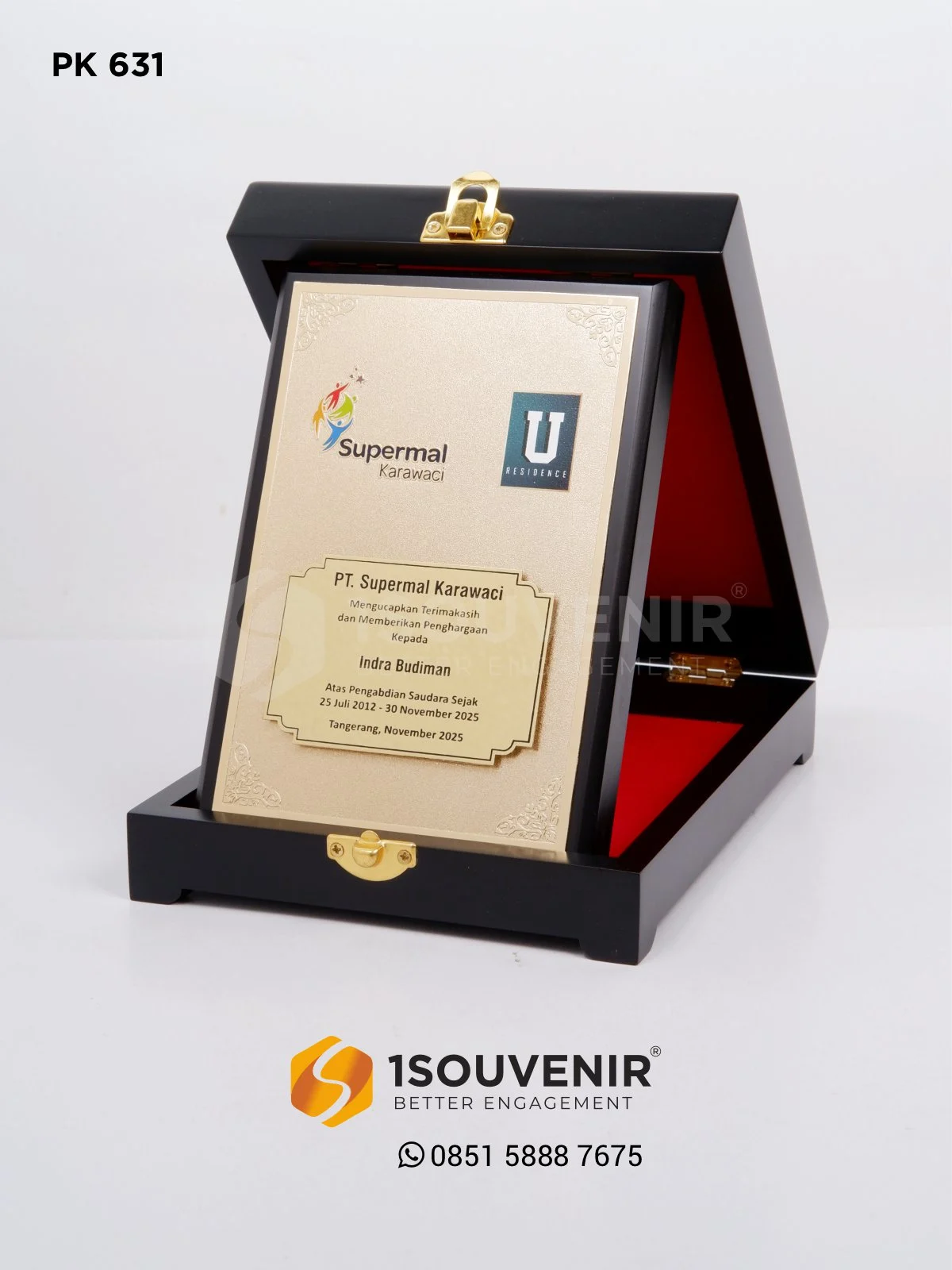 Plakat Kayu Penghargaan Purna Tugas dari PT Supermal Karawaci