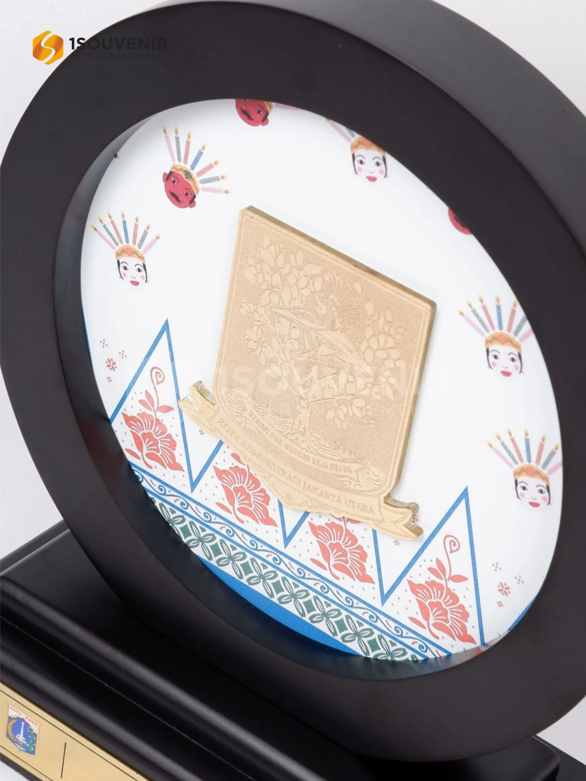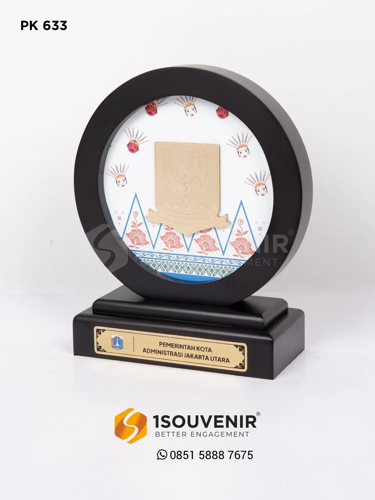 Plakat Kayu Bulat Kenang-kenangan dari Pemerintah Kota Administrasi Jakarta Utara