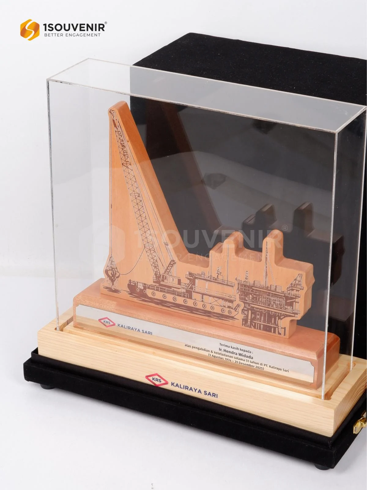 Plakat kayu memancarkan kesan hangat, elegan, dan bermakna sehingga tepat sebagai ungkapan terima kasih untuk momen purna tugas. Wujudkan apresiasi bersama 1Souvenir, mitra souvenir profesional Anda.