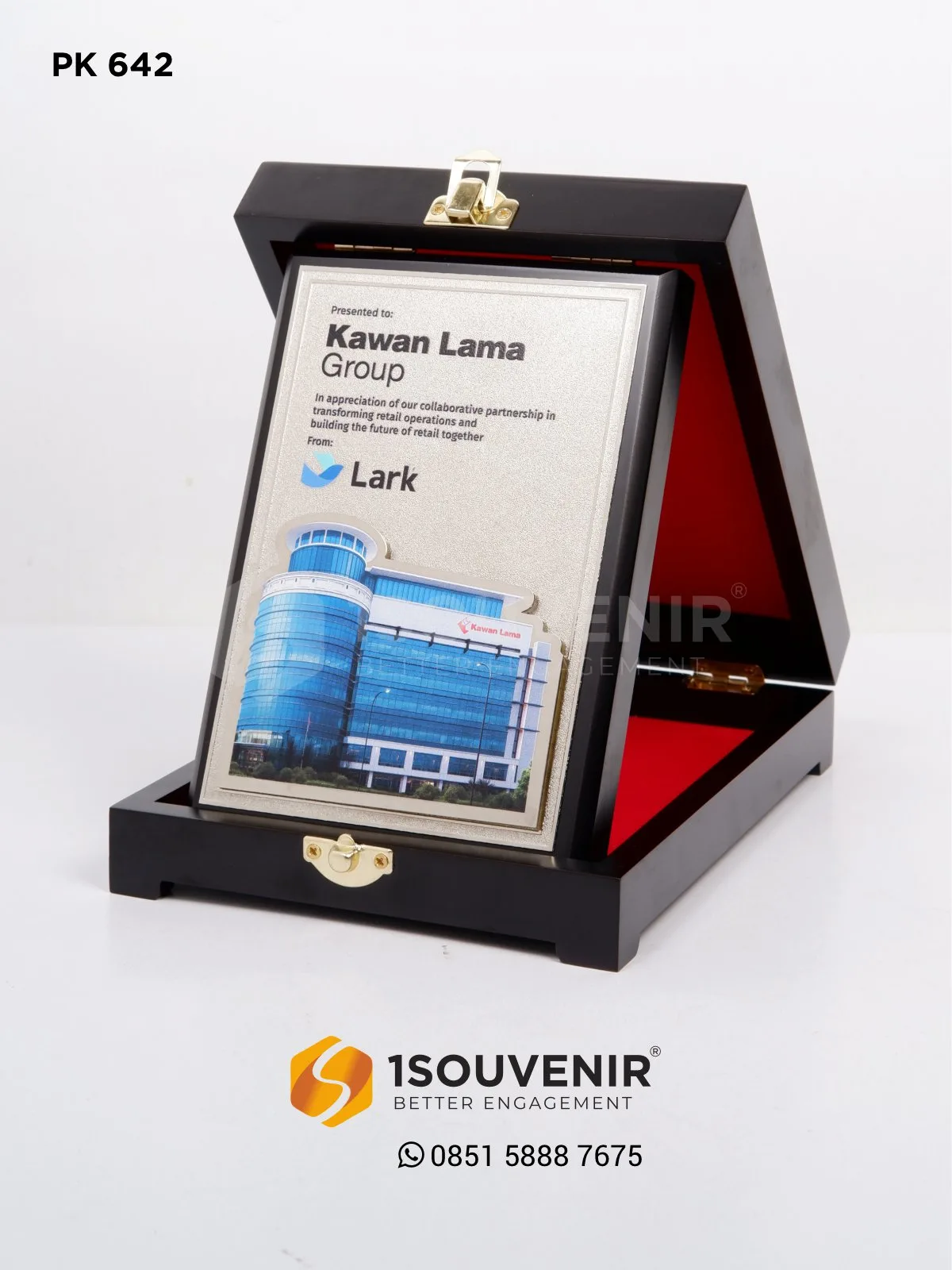 Plakat kayu merupakan simbol apresiasi yang berharga dan berkelas. Desainnya elegan, kokoh, dan sarat makna. Wujudkan kenang-kenangan kolaborasi terbaik bersama 1Souvenir untuk kesan profesional yang tak terlupakan.