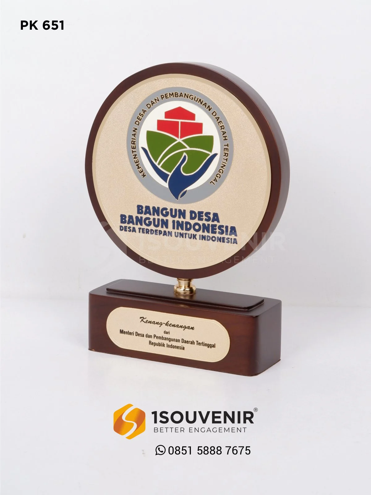 Plakat Bangun Desa Bangun Indonesia ini hadir sebagai simbol apresiasi sekaligus kenang-kenangan dari Menteri Desa dan Pembangunan Daerah Tertinggal Republik Indonesia. Desain bulat elegan dengan sentuhan kayu klasik membuat pesan penghargaan terasa semakin bermakna.