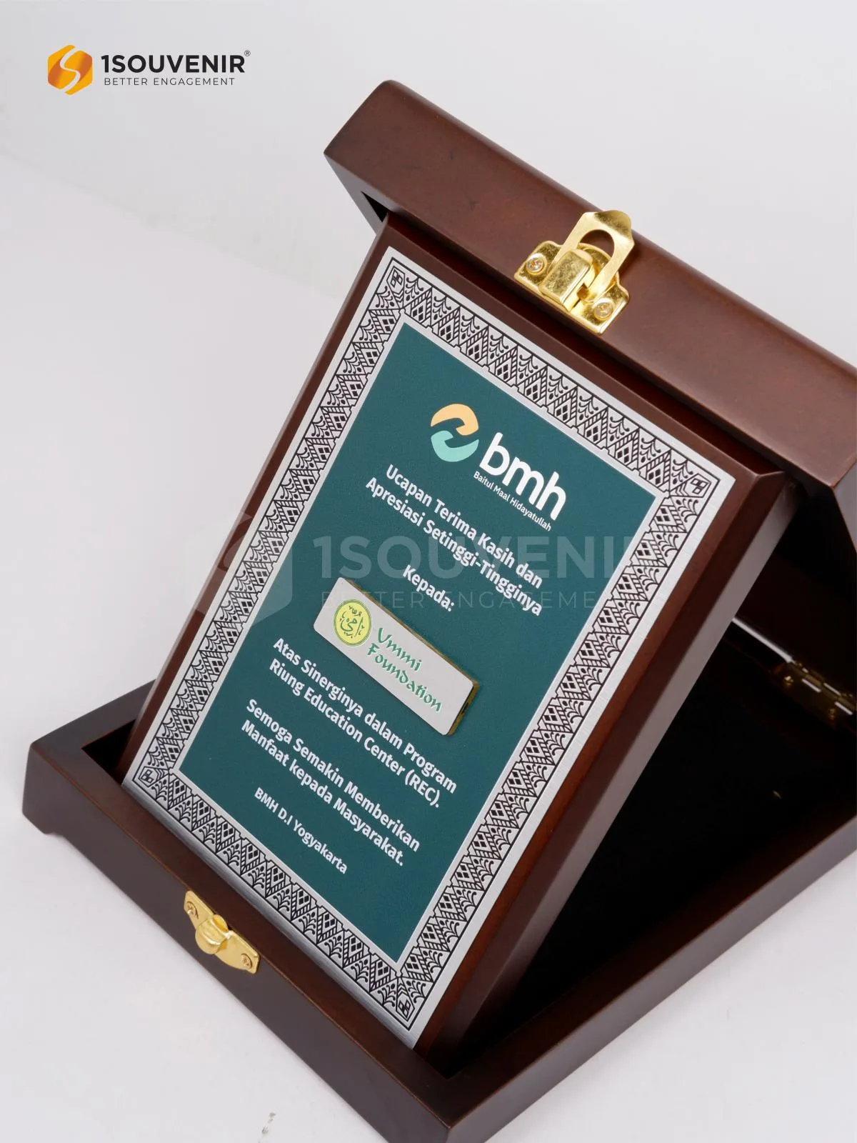 Plakat kayu merupakan pilihan kenang-kenangan yang berkesan dan bernilai elegan. Jadikan plakat sebagai souvenir Anda bersama 1Souvenir.