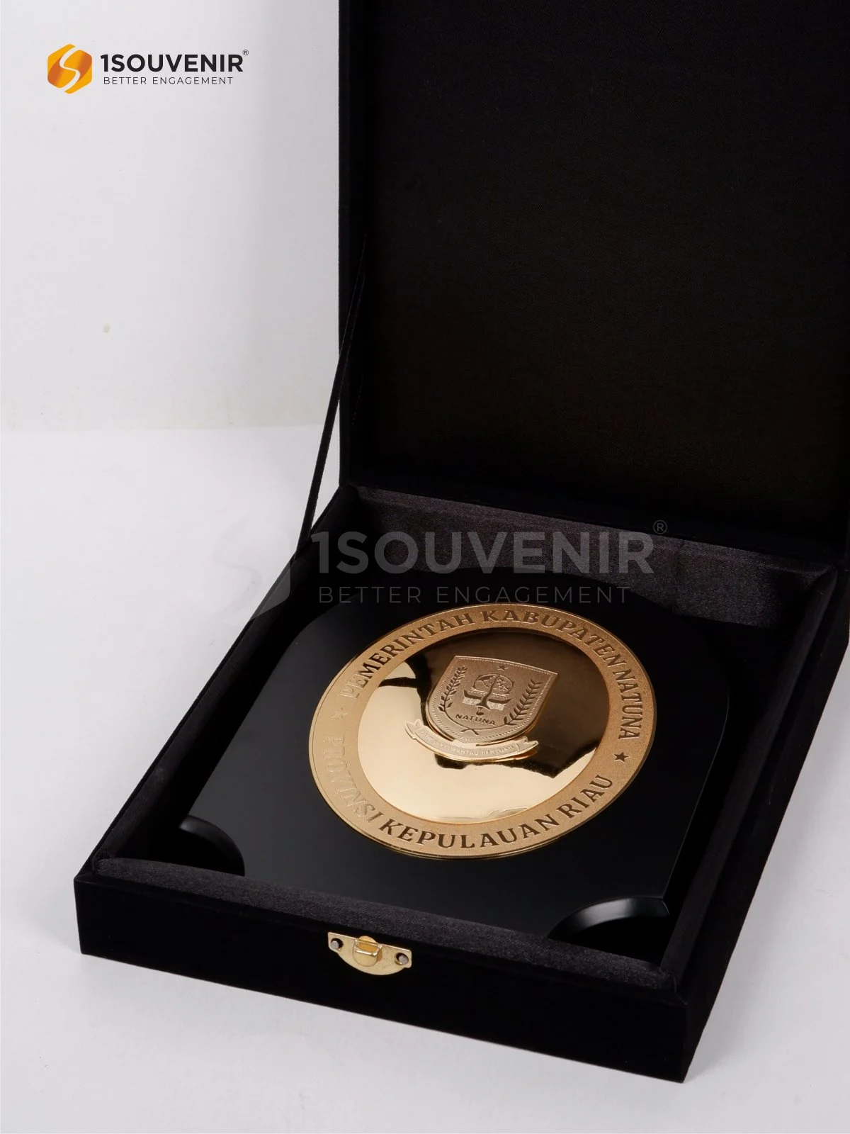 Plakat Pemerintah Kabupaten Natuna ini menjadi bentuk kenang-kenangan yang merepresentasikan identitas daerah serta kebanggaan terhadap perjalanan pembangunan. Desainnya menampilkan lambang daerah yang elegan, menjadikannya simbol penghargaan sekaligus pengingat atas hubungan baik yang terjalin.