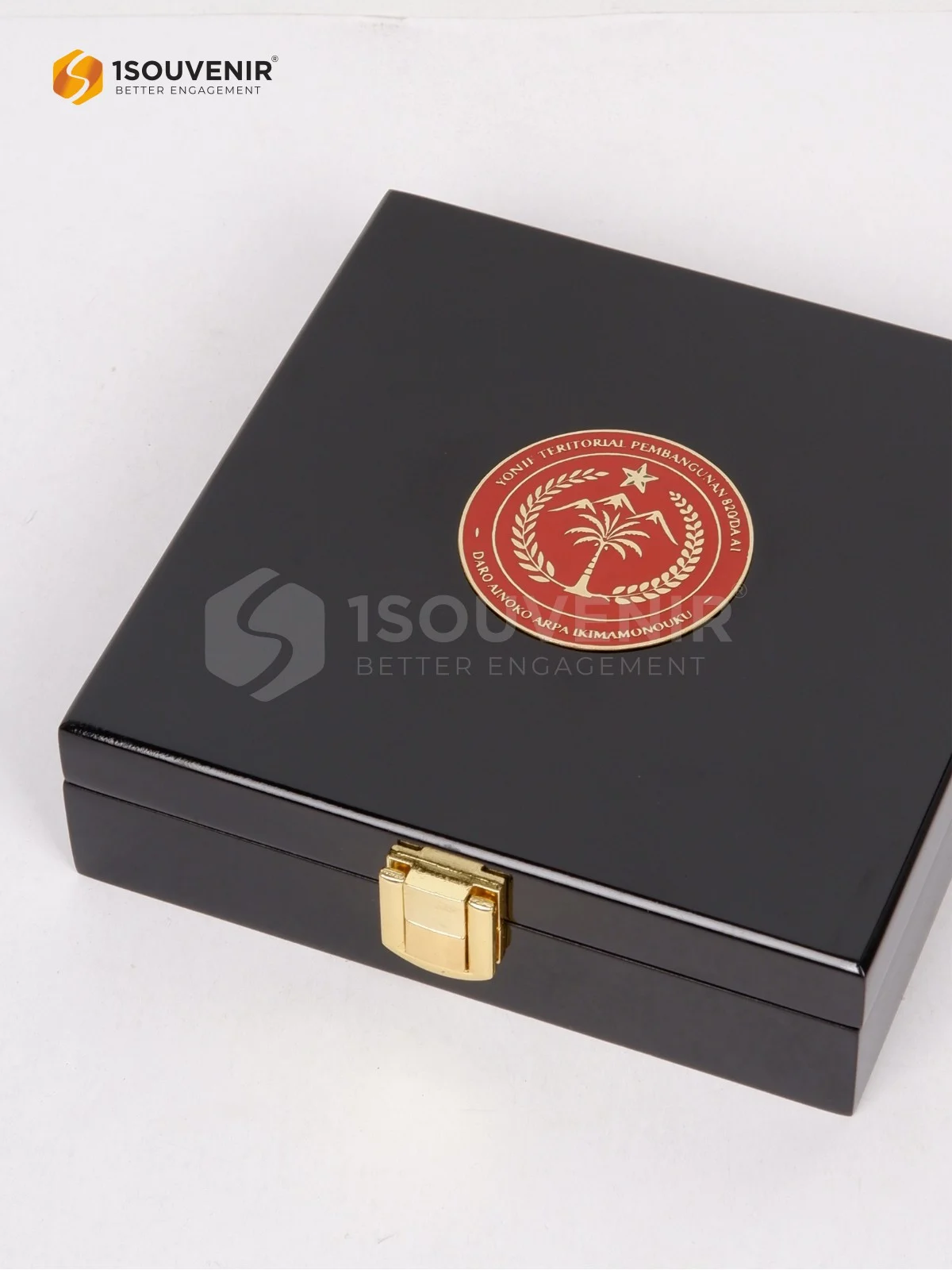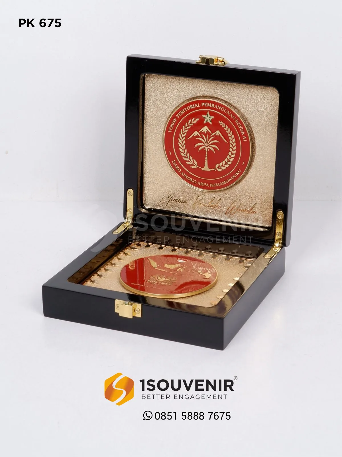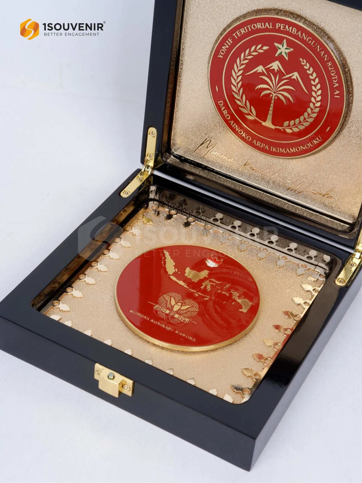 Plakat Yonif Teritorial Pembangunan 820/DA AI ini hadir sebagai bentuk cendera mata yang sarat makna. Dikemas dalam kotak eksklusif dengan dominasi warna hitam, emas, dan merah, plakat ini mencerminkan kehormatan, keberanian, serta identitas kesatuan yang kuat.