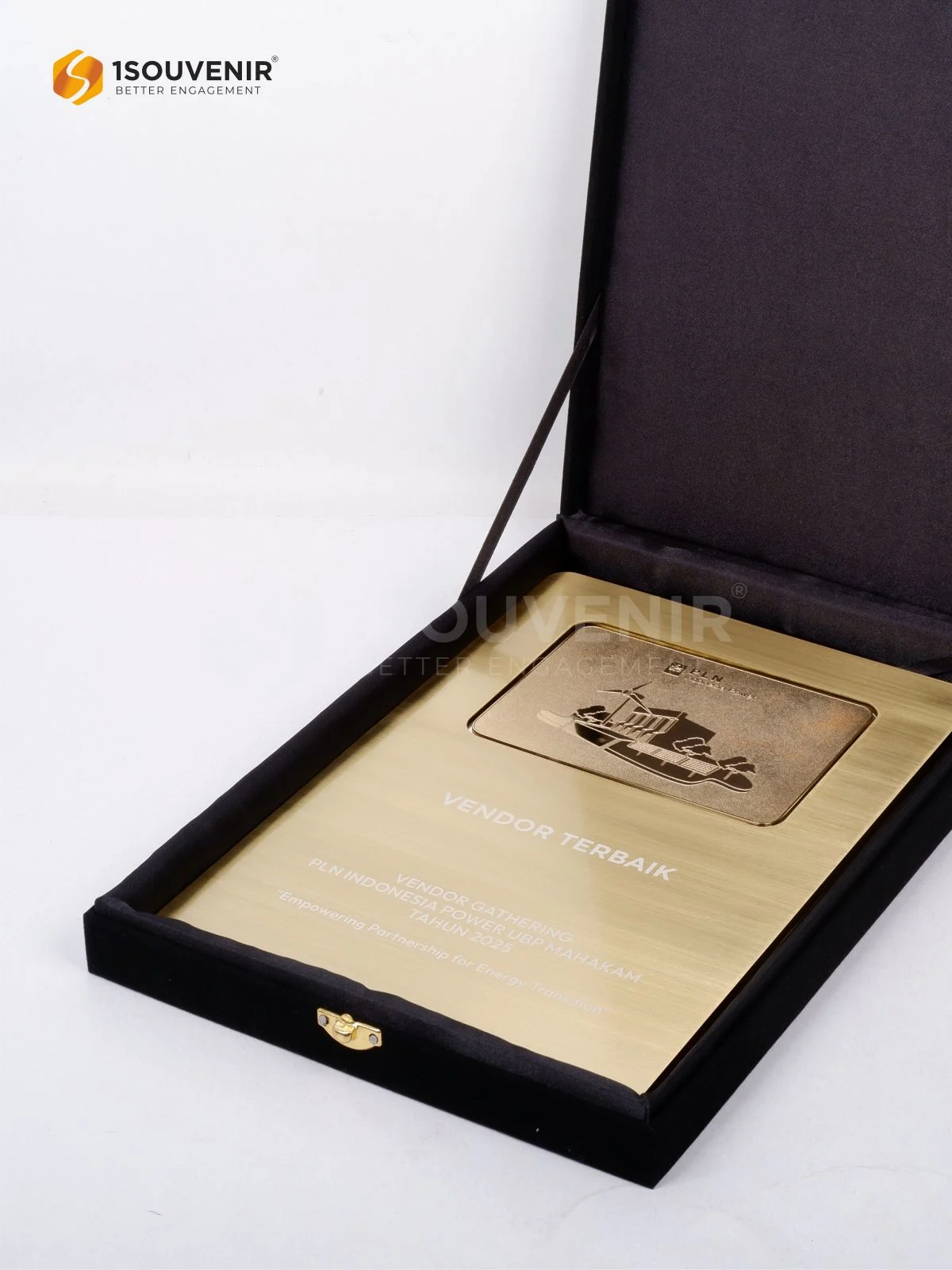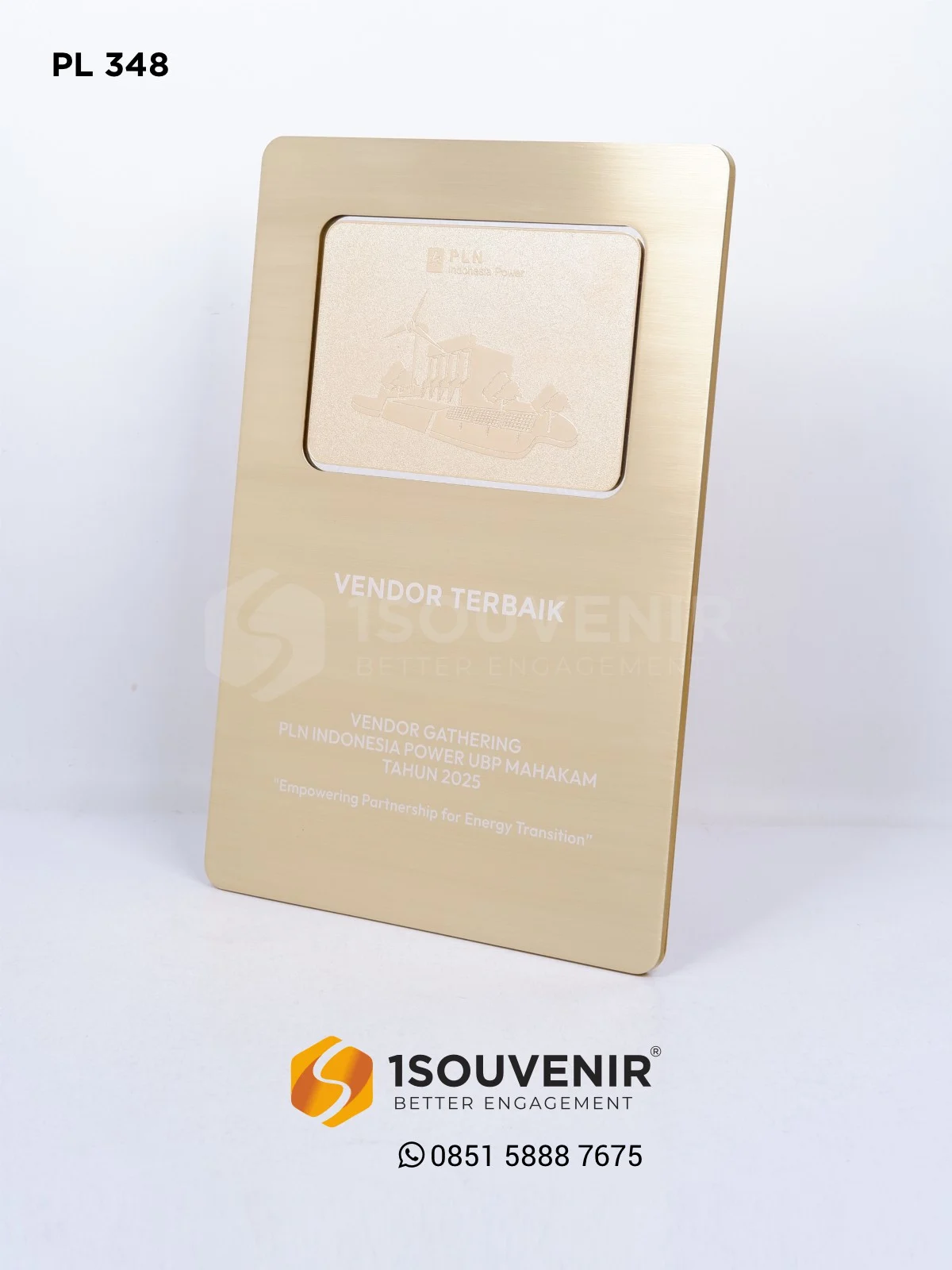 Plakat Vendor Gathering PLN Indonesia Power ini hadir sebagai simbol apresiasi atas dedikasi yang nyata. Dengan desain elegan dan sentuhan warna emas yang hangat, plakat logam ini menjadi penanda bahwa kerja keras selalu menemukan panggung untuk diakui.