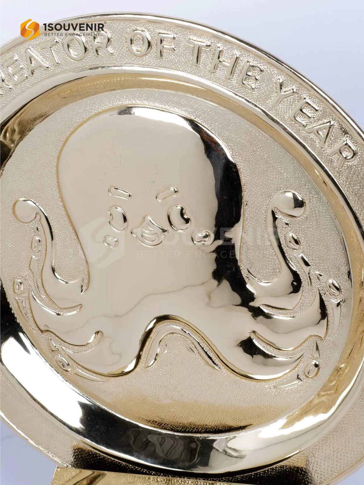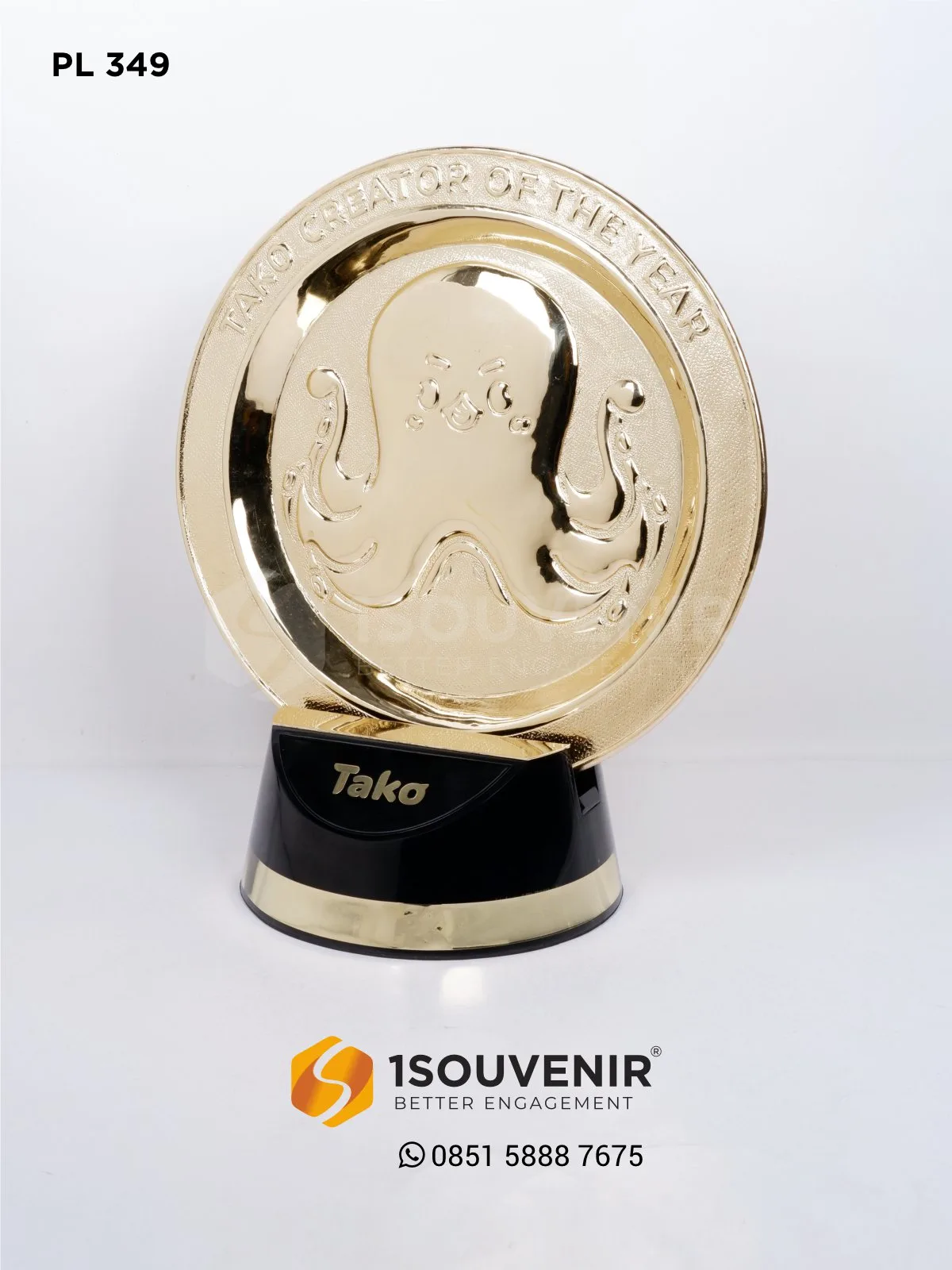 Plakat Tako Creator of The Year yang berbentuk piringan emas ini menjadi simbol kejayaan para kreator. Detail guratan karakter tako yang ceria memberi sentuhan unik, seolah merayakan setiap karya yang telah memberi dampak besar sepanjang tahun. Sebuah penghargaan yang memadukan kesan elegan dan playful.