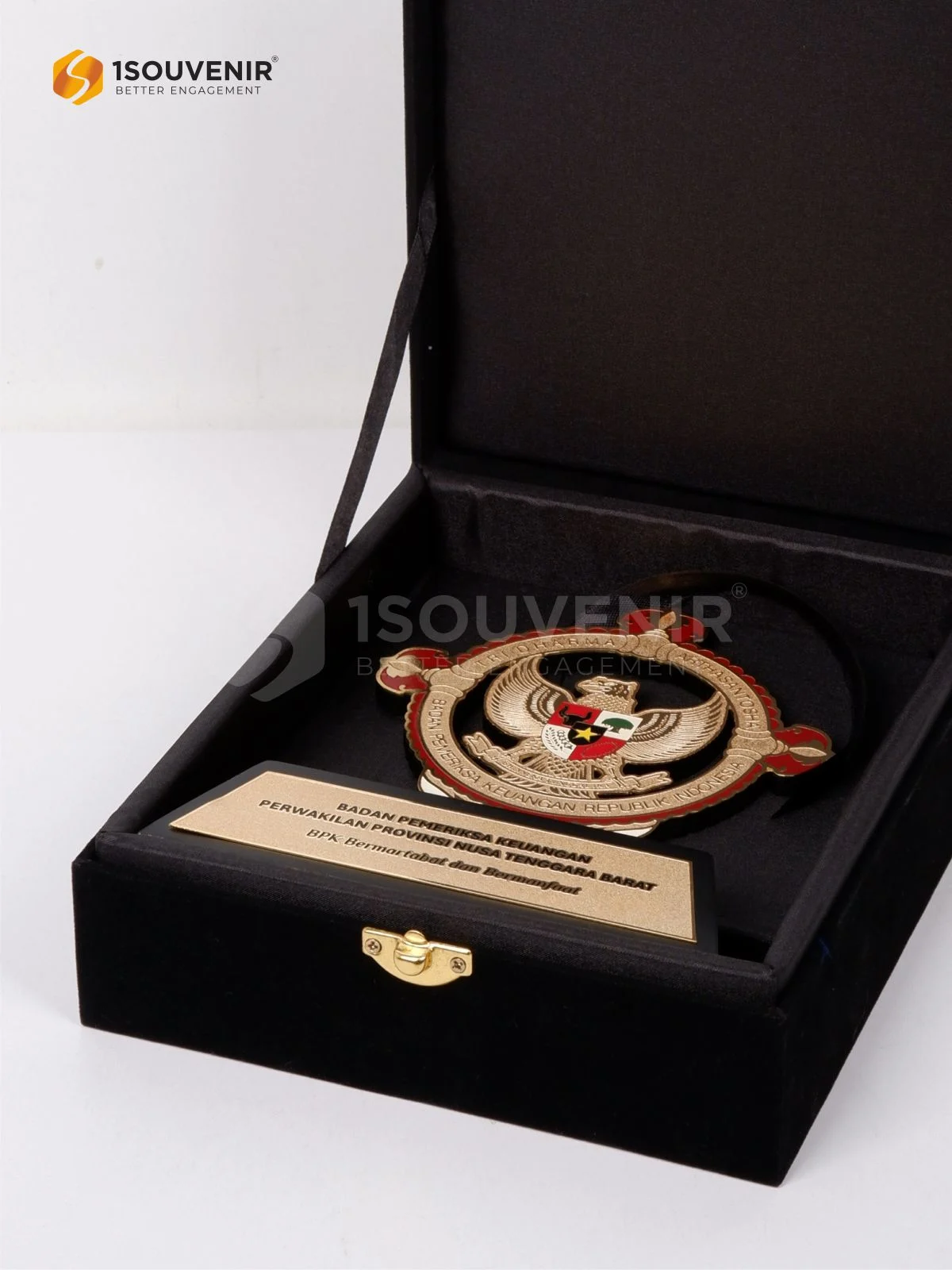 Kenang-kenangan elegan berupa plakat logam selalu memiliki nilai tersendiri. Wujudkan plakat Anda bersama 1Souvenir.