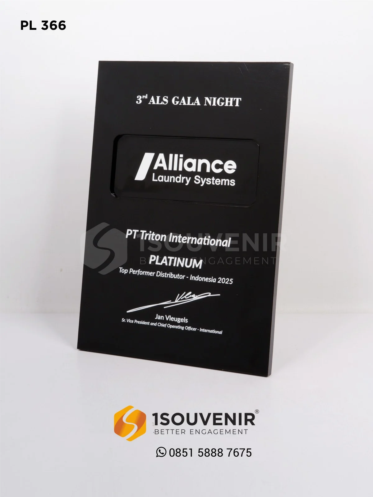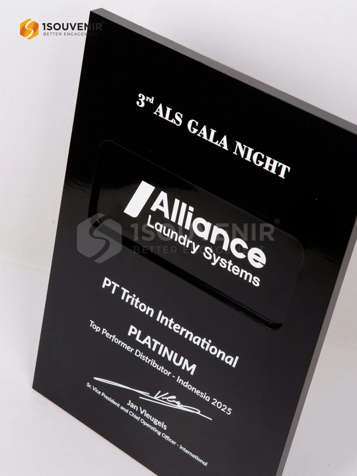 Plakat Alliance Laundry Systems ini diberikan sebagai penghargaan khusus kepada PT Triton International yang berhasil meraih predikat Top Performer Distributor Indonesia 2025. Plakat logam ini simbol dedikasi, konsistensi, serta kepercayaan yang dibangun melalui kerja sama jangka panjang.