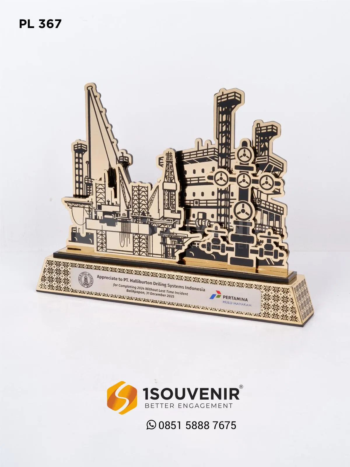 Plakat PT Halliburton Drilling System ini diberikan sebagai penghargaan khusus dari Pertamina Hulu Mahakam atas keberhasilan menyelesaikan periode kerja tanpa Lost Time Incident. Desainnya menampilkan elemen industri yang kuat, merepresentasikan semangat ketangguhan dan profesionalisme.