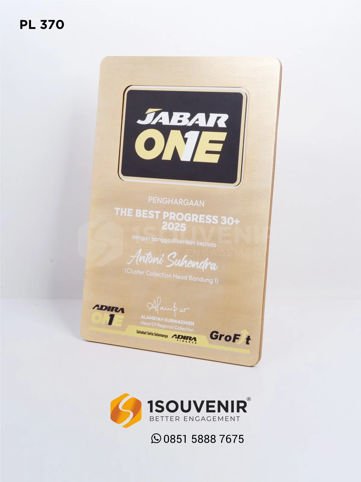 Plakat Logam Play Button Penghargaan The Best Progress 30+ 2025 – Jabar One oleh Adira Finance