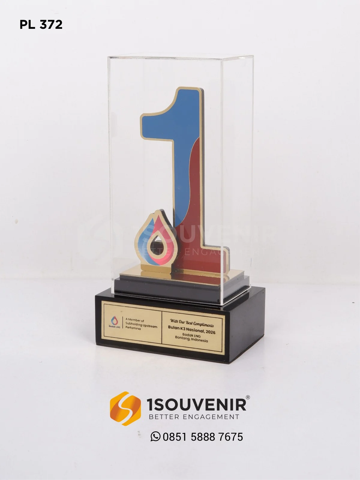 Plakat Bulan K3 Badak LNG dirancang sebagai penghargaan berkelas yang merepresentasikan semangat keselamatan dan dedikasi tinggi. Bentuk angka yang modern dipadukan dengan detail elegan menjadikannya simbol apresiasi yang tampil berbeda serta memiliki karakter kuat.