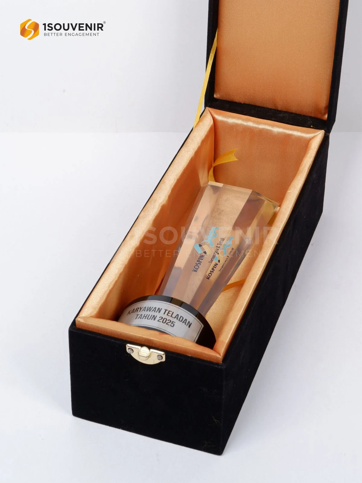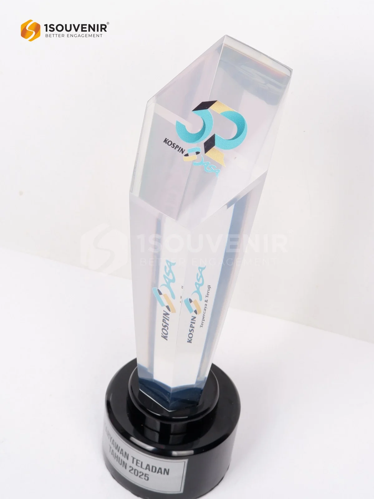 Piala Kospin Jasa ini dihadirkan sebagai penghargaan bagi Karyawan Teladan Tahun 2025. Desain akrilik tinggi yang jernih dan modern mencerminkan nilai integritas, prestasi, dan konsistensi, menjadikannya simbol apresiasi yang membanggakan.