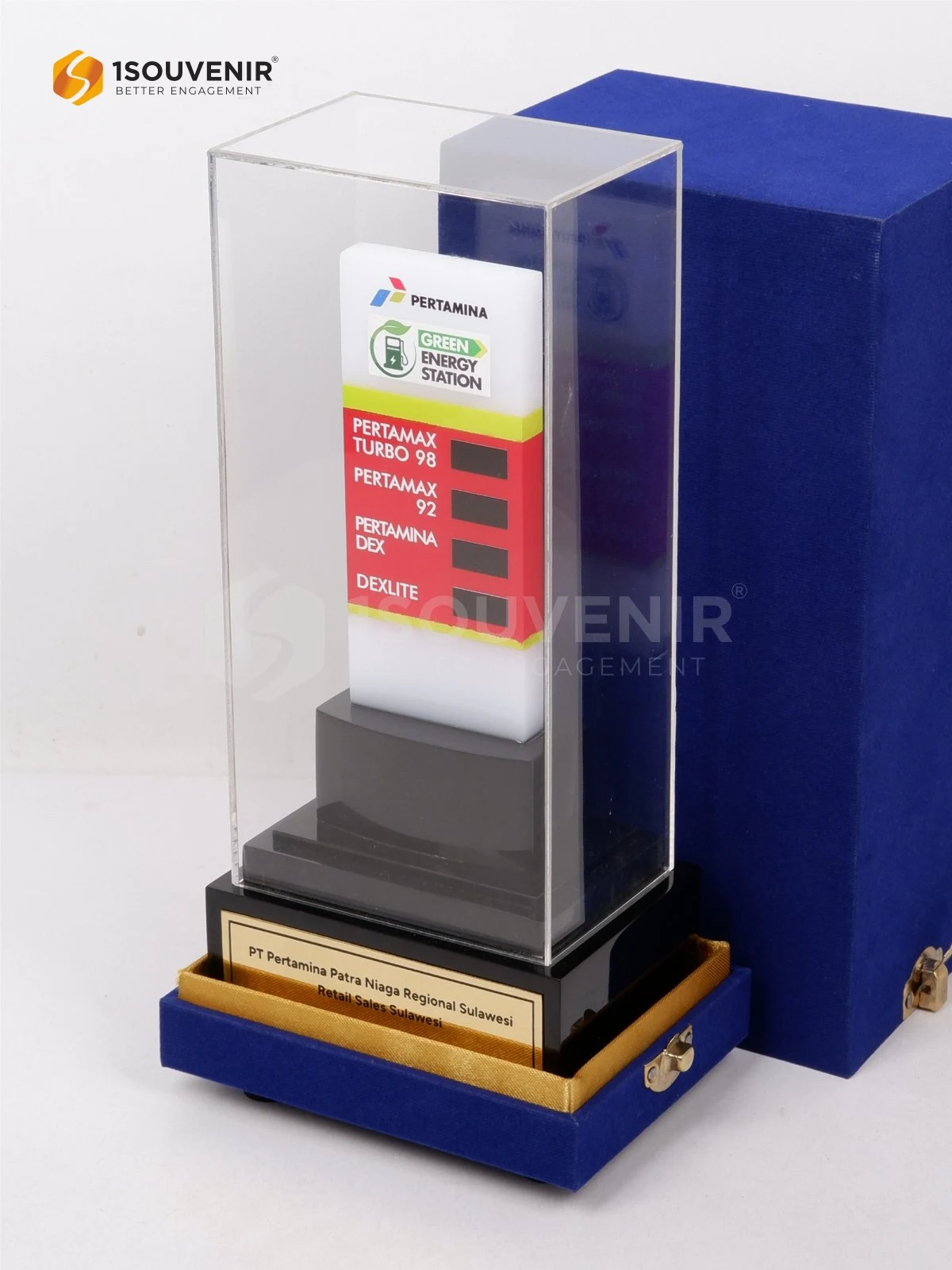Miniatur Pylon SPBU hadir sebagai kenang-kenangan penuh makna dengan desain menyerupai penanda SPBU yang ikonik. Detail warna, logo, dan bentuknya mencerminkan identitas Pertamina secara kuat, menjadikannya simbol apresiasi yang unik, profesional, dan sarat nilai representatif.