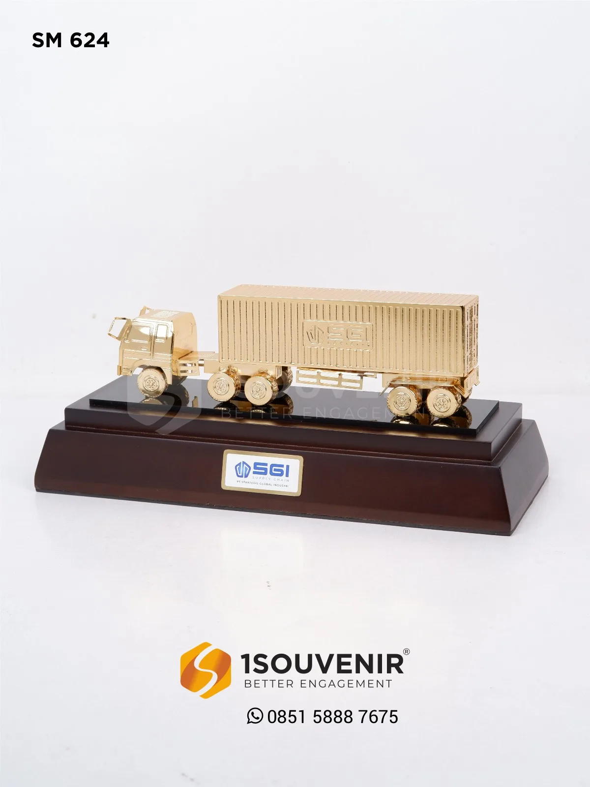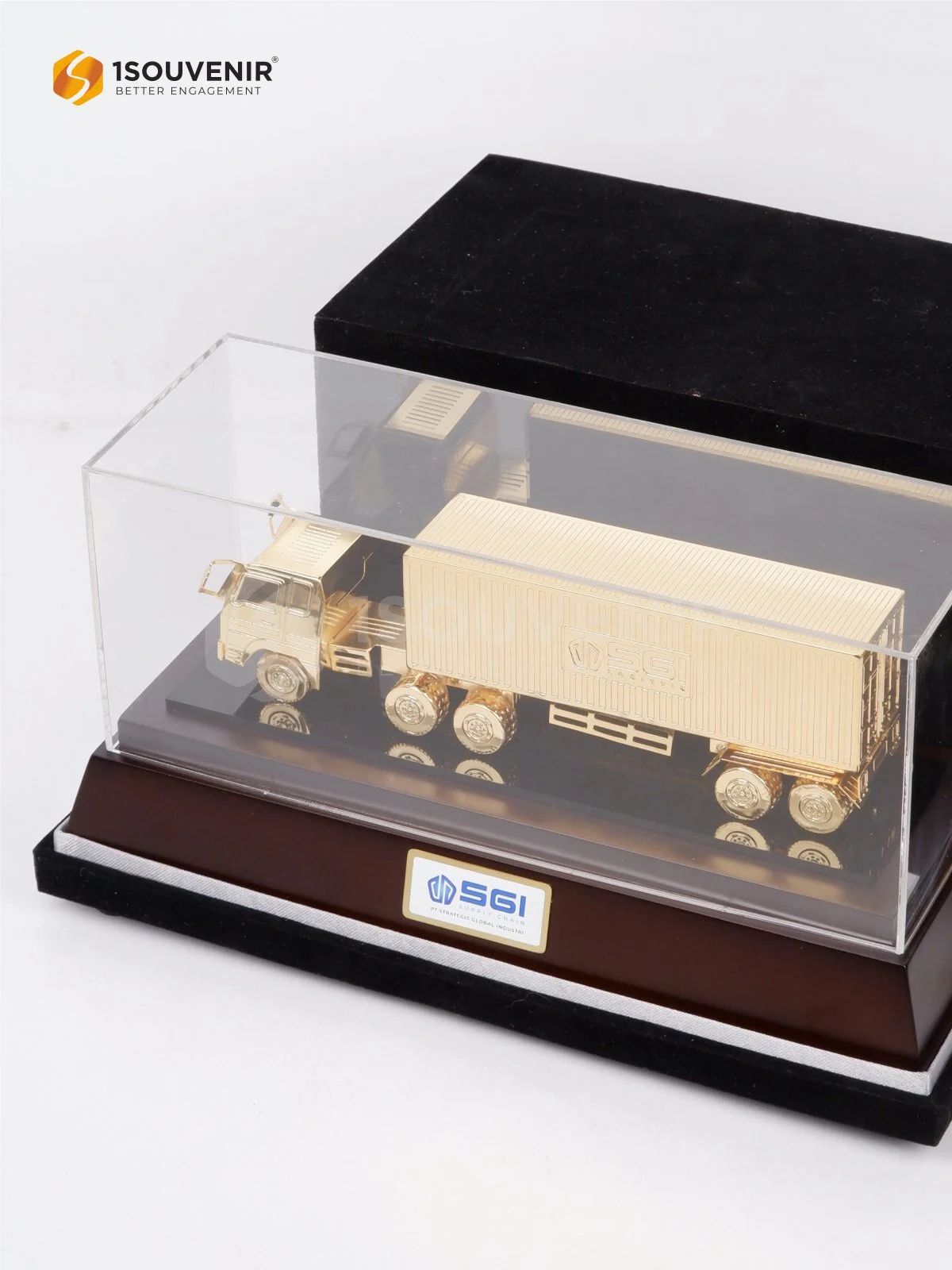 Semangat tersebut diwujudkan melalui miniatur SGI berbentuk truk kontainer berlapis emas yang mencerminkan kekuatan distribusi. Detail desain yang rapi serta tampilan elegan menjadikannya simbol profesionalisme dan kelas tersendiri.