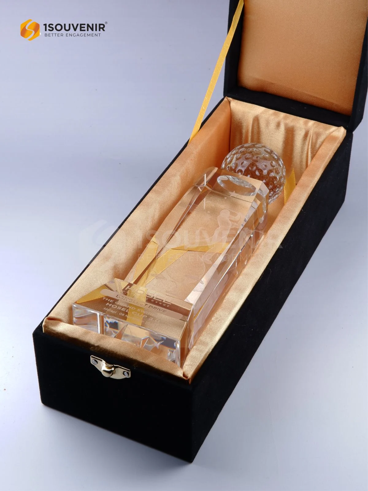 Piala kristal menjadi pilihan tepat untuk piala golf karena tampil elegan, jernih, dan berkelas. Wujudnya tidak hanya menjadi trofi, tetapi juga kenangan prestasi yang akan dikenang lama. Wujudkan piala golf Anda bersama 1Souvenir.